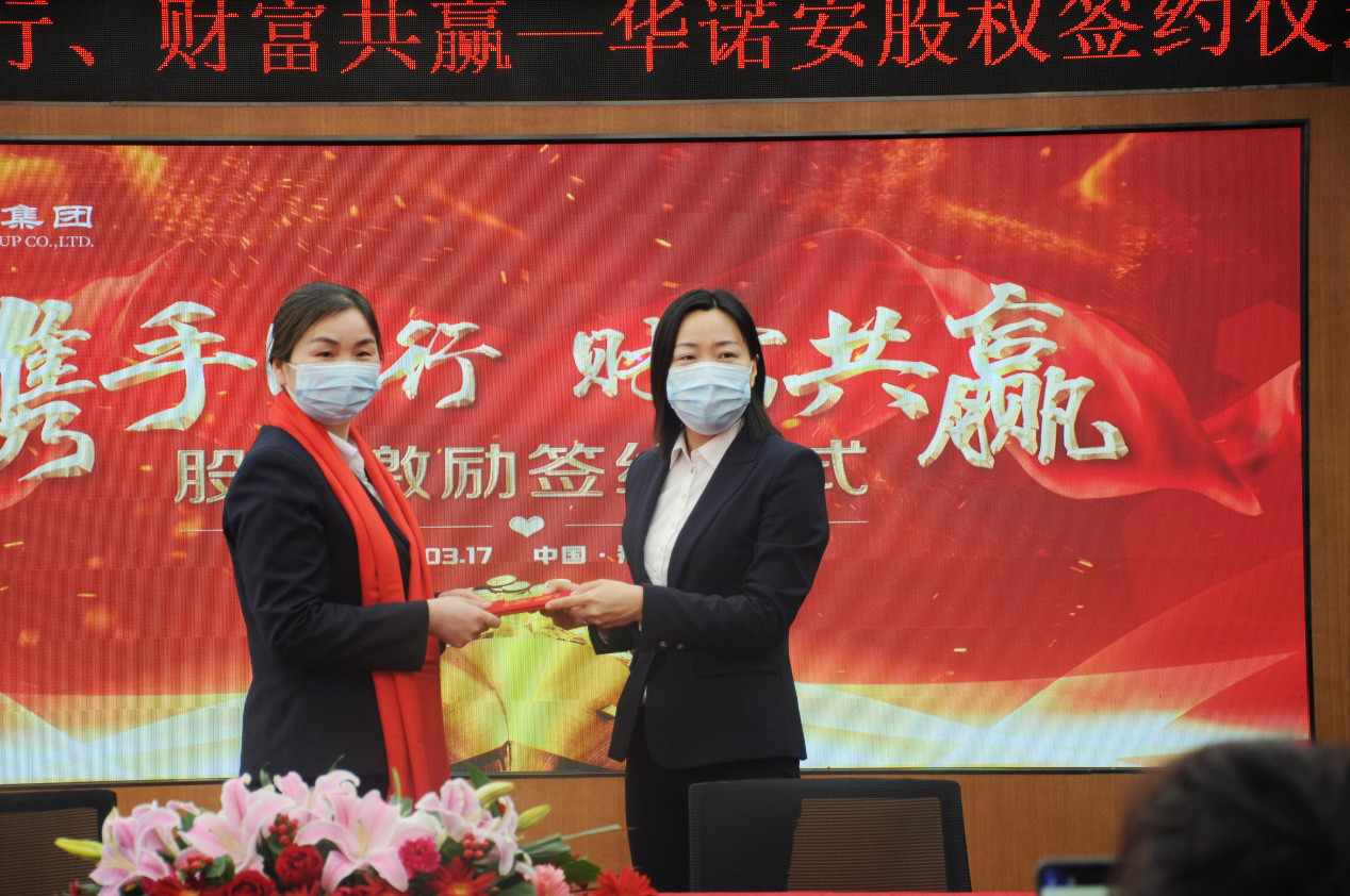 本次股權(quán)簽約是“實(shí)股股權(quán)”與“崗位分紅股股權(quán)”相結(jié)合的激勵(lì)模式。也就是說從此刻起程文英女士將成為真正意義上華諾安的主人。